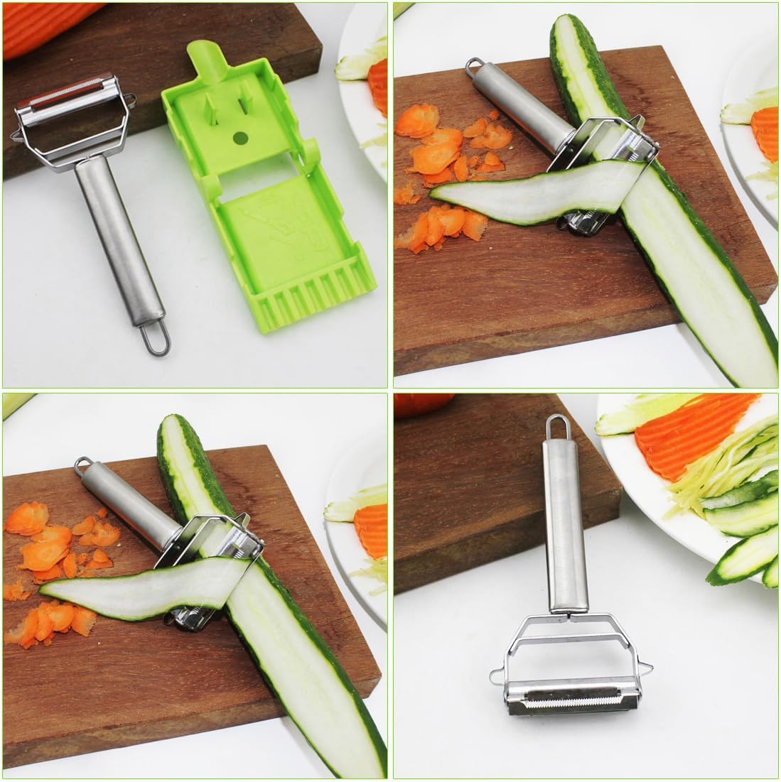 Cocororo Pelador multifuncional de acero inoxidable + pelador de papas en espiral, Pelador multifuncional Cocororo, juego de herramientas para pelador múltiple Zestio